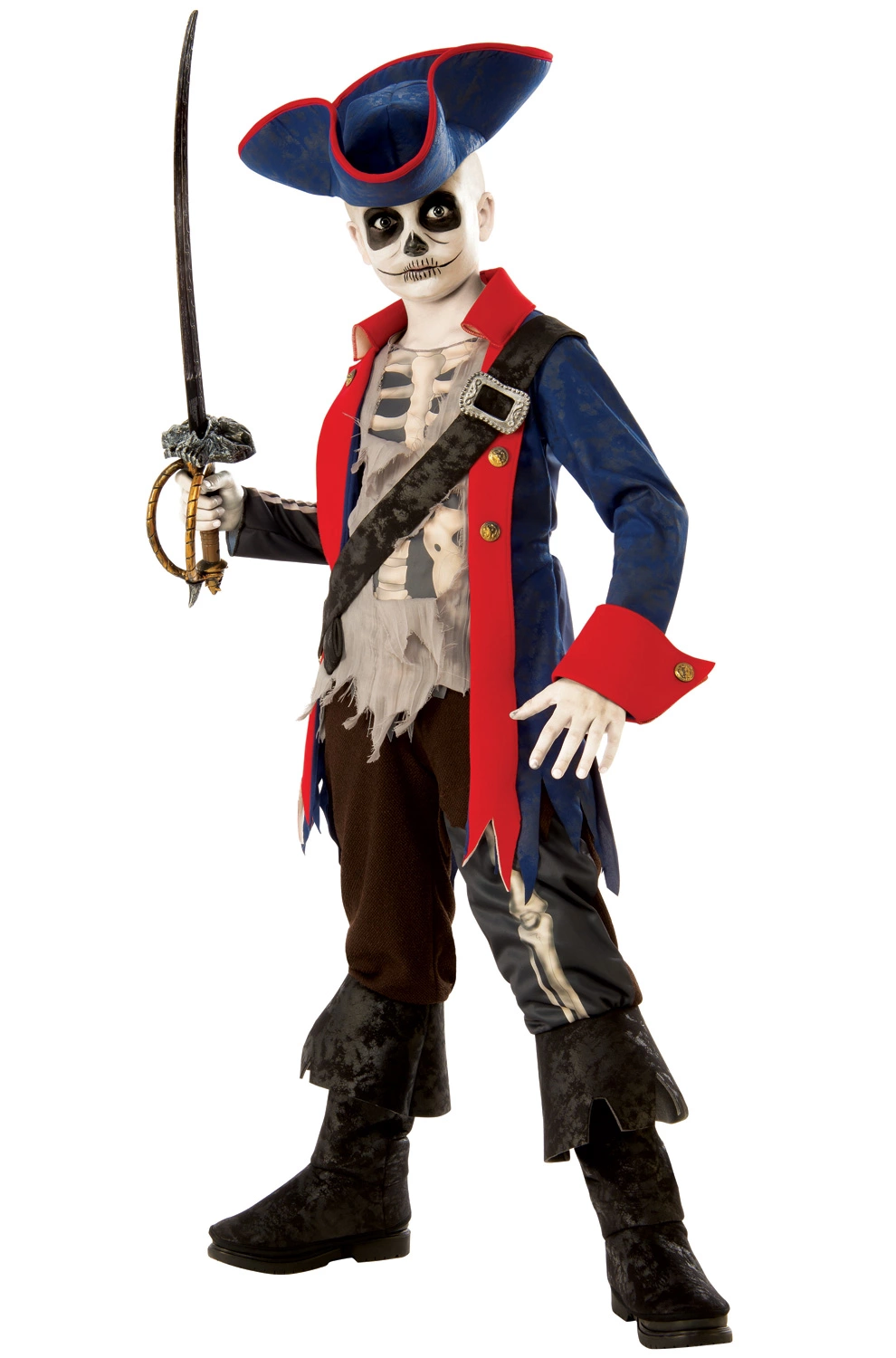You’ll make the whole place look like it’s being haunted by a dead Revolutionary War soldier with this Captain Bones Child Costume. This dead Patriot costume features a tattered blue and red uniform jacket with a shirtfront that makes it look like your bones are showing through. You’re sure to give everyone a scare with this ghostly costume.