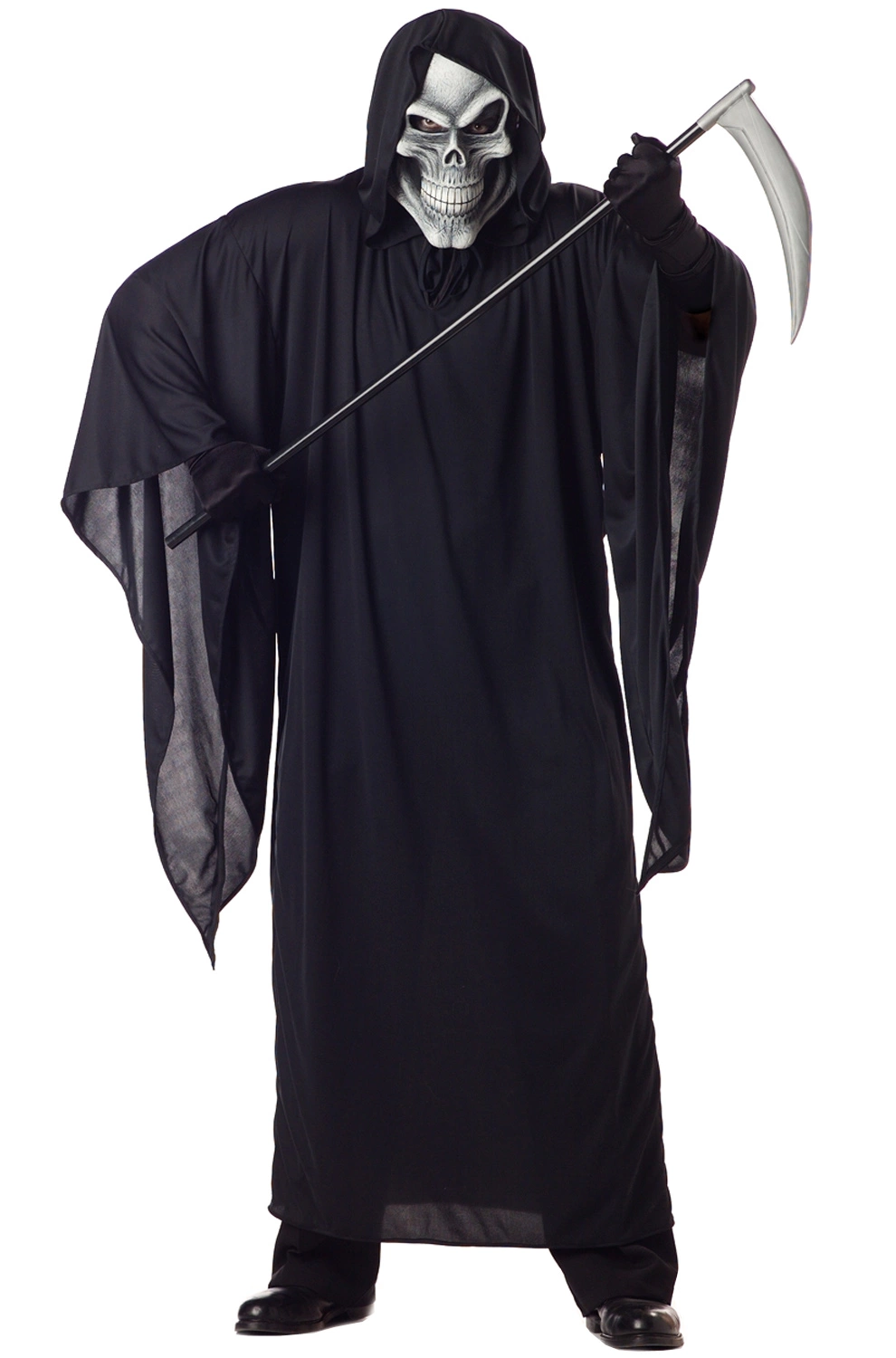 This deadly costume is perfect for ruling the underworld! This Grim Repaer costume not only features extra spooky, flowing sleeves, but it has a creepy mask with a smiling skeleton face! Have everyone begging for their lives this Halloween when you show up to take their souls!