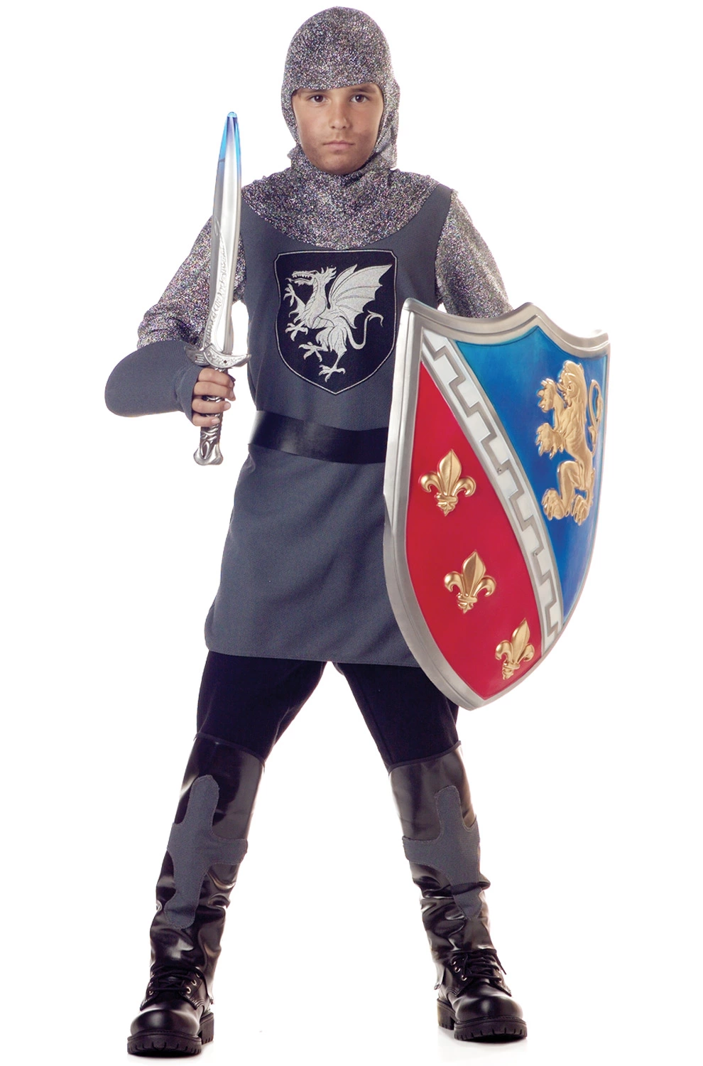 Crash the royal court in this magnificient valiant knight costume! You’ll look like you just stepped away from King Arthur’s roundtable. The shiny chain mail makes the costume look even more authentic!